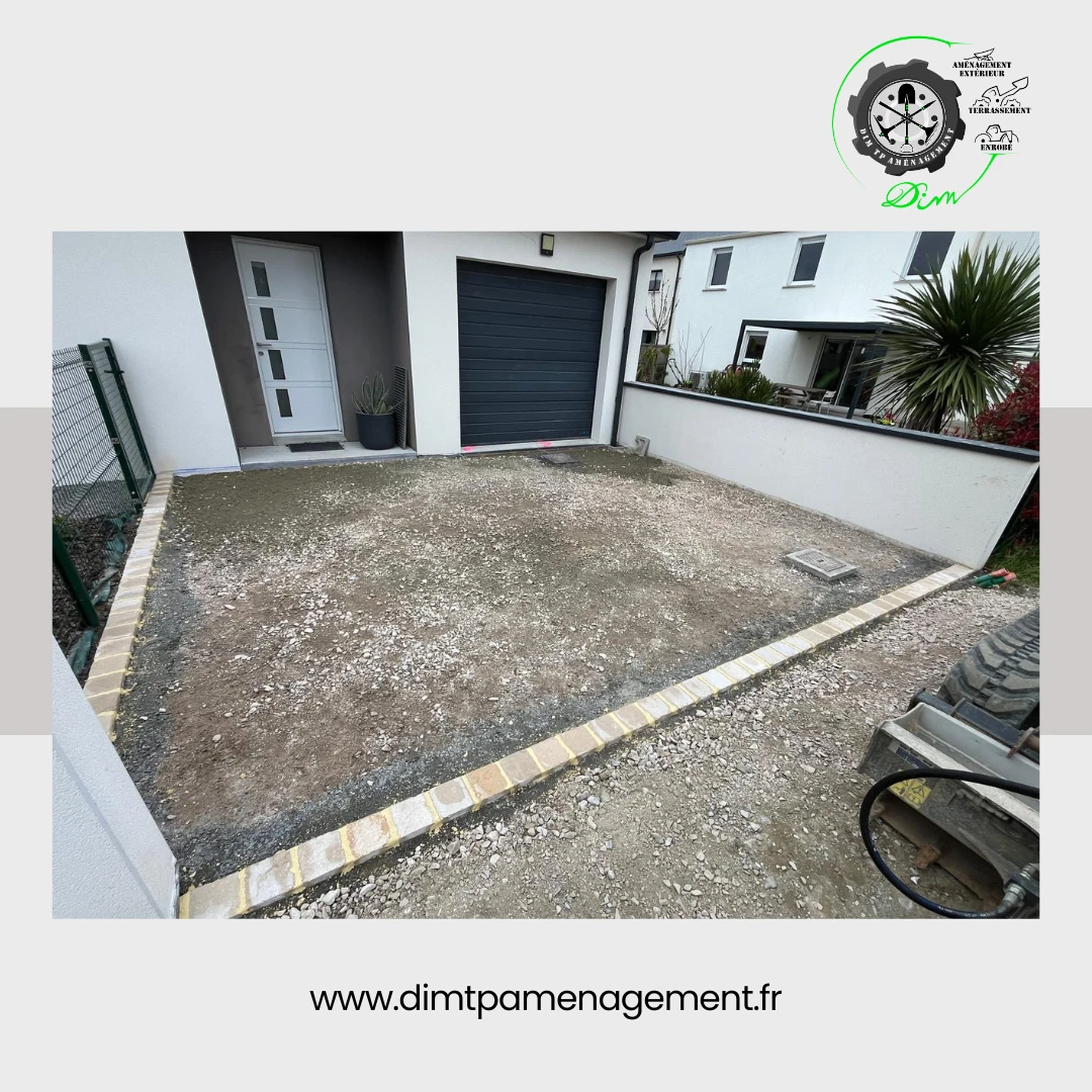 Nous avons ensuite procédé à la pose de pavés, choisie pour délimiter les zones et apporter un rendu esthétique durable.