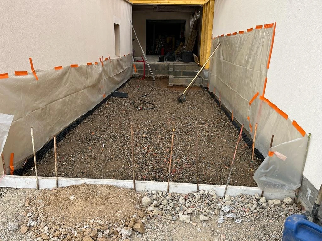 Dalle béton réalisée pour un futur garage ! Nous prenons le temps de tout protéger pour ne pas perdre de temps lors du nettoyage !