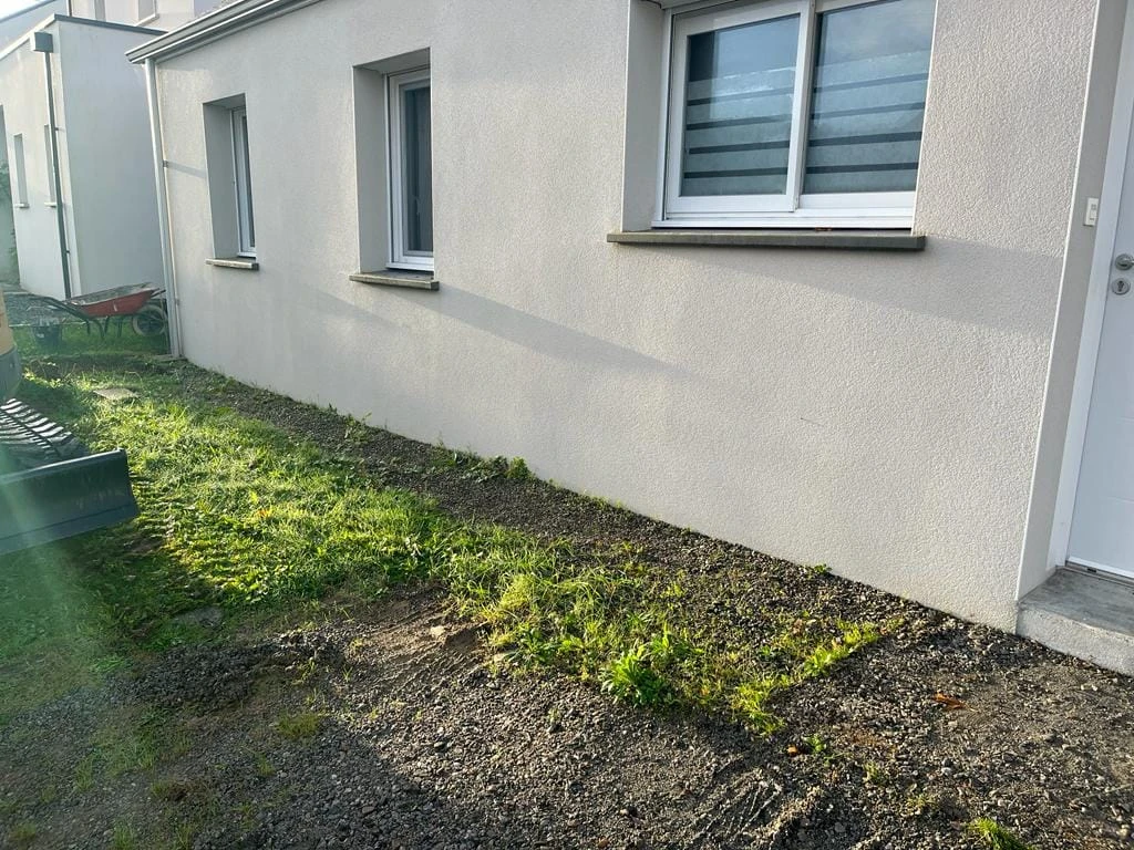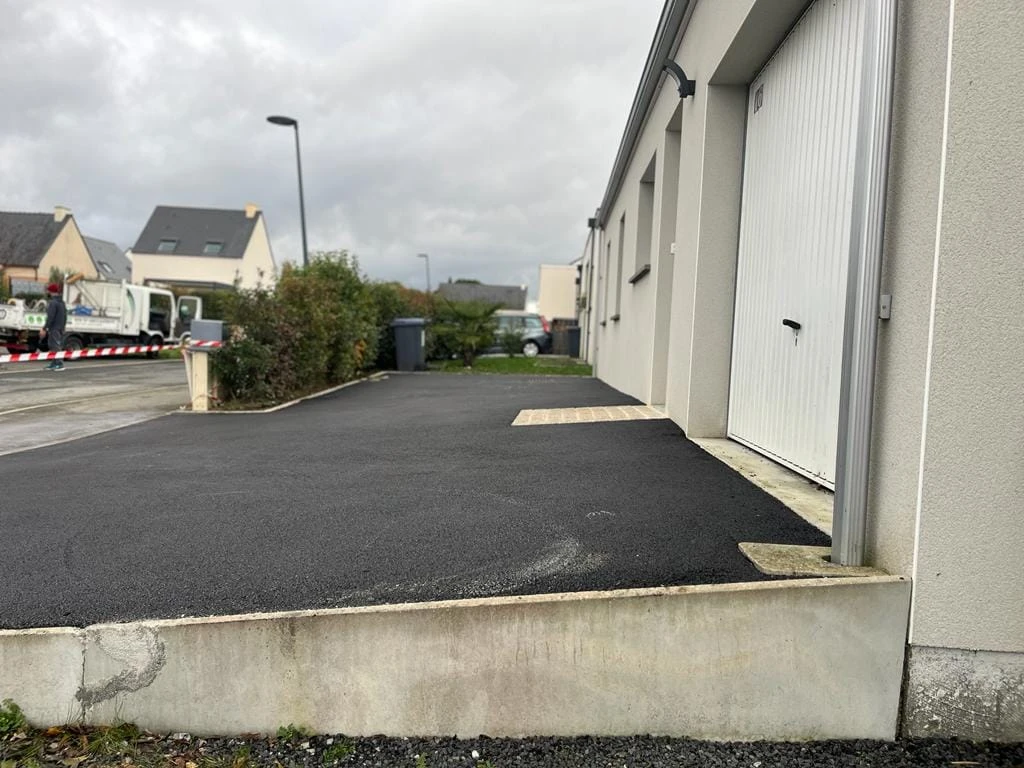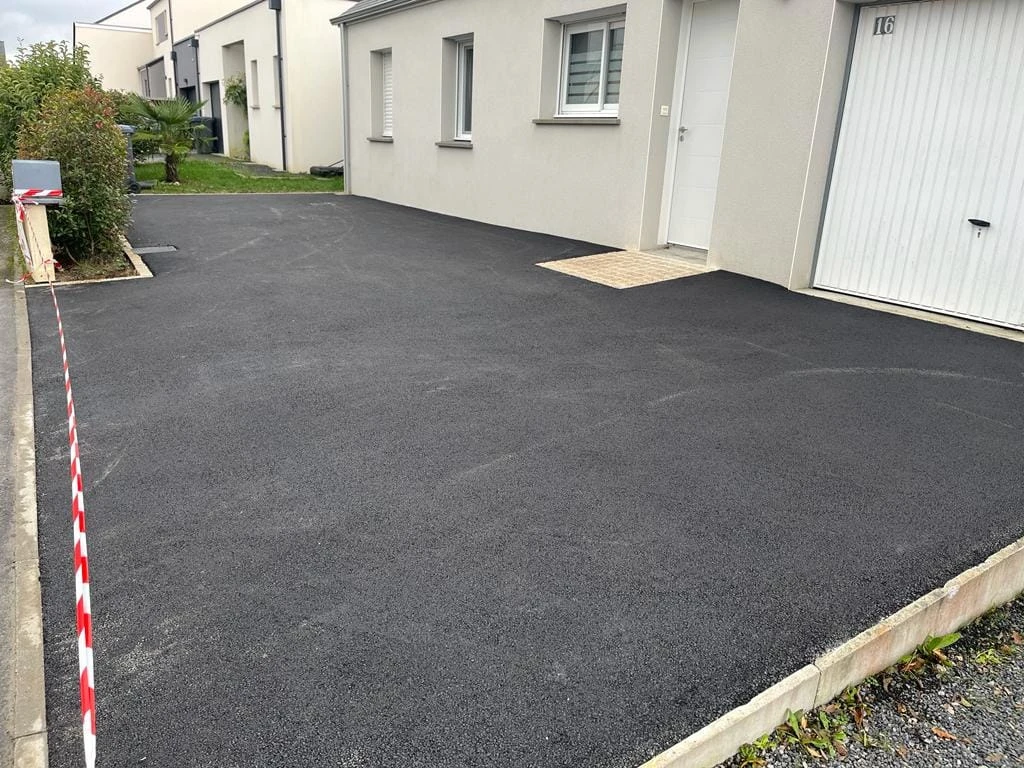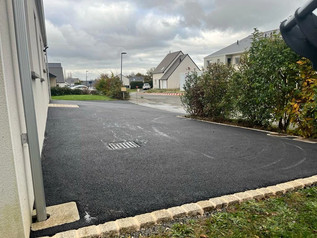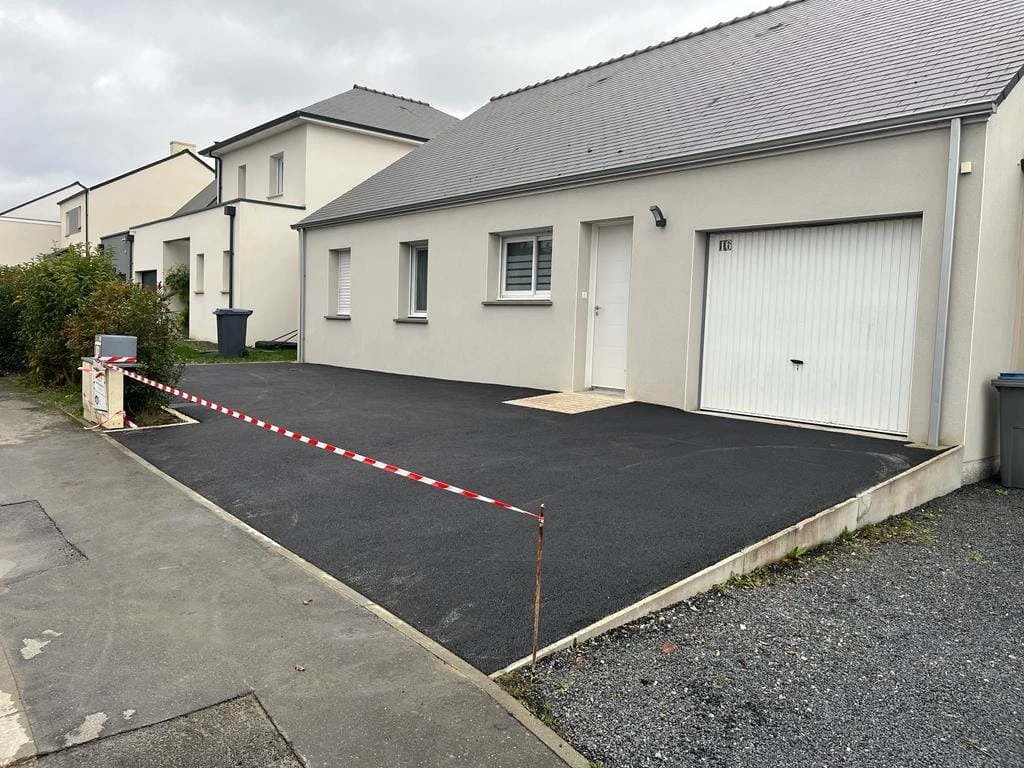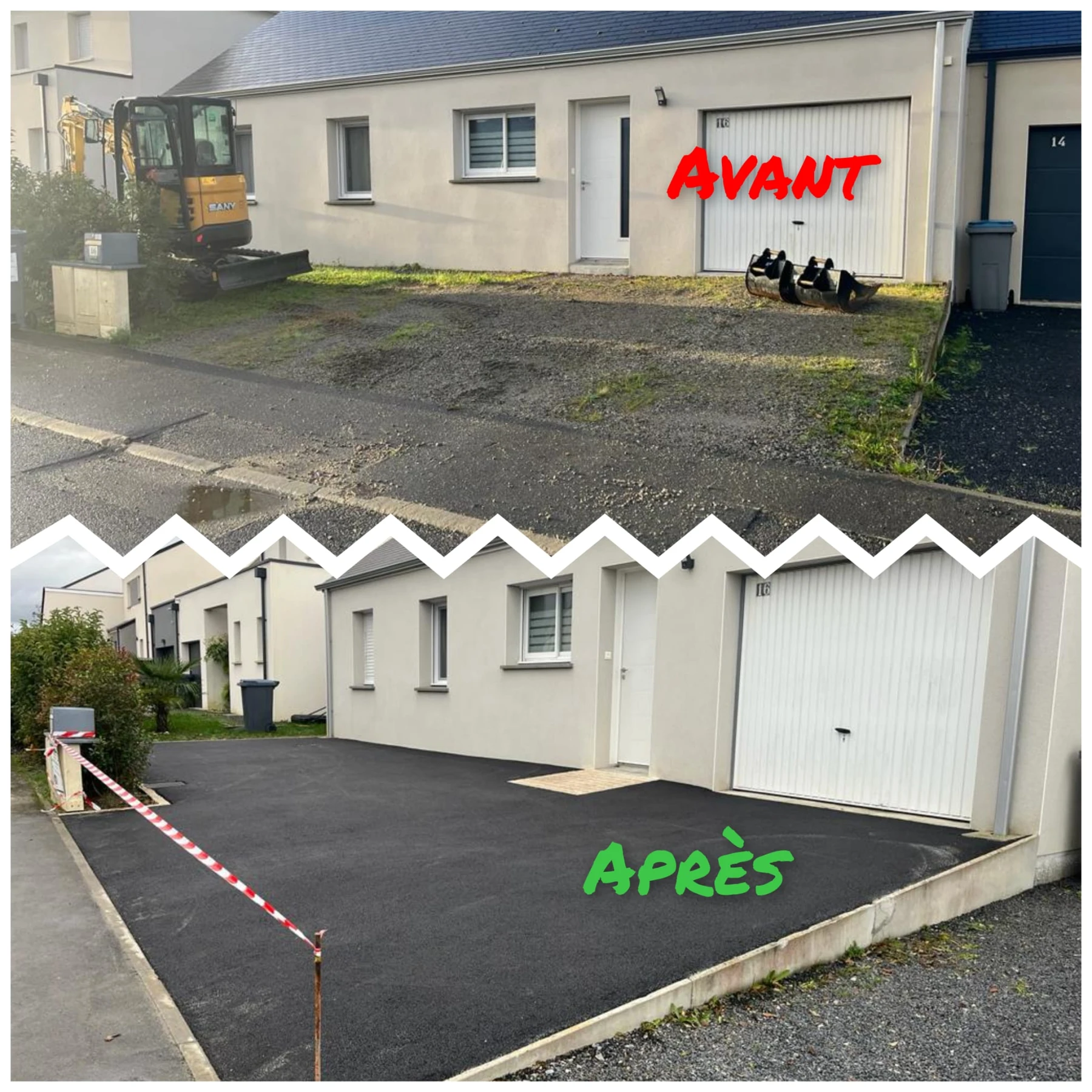 Aménagement d'une devanture de maison pour un client de SAINT MARS DU DÉSERT qui ne souhaitait plus d'entretien et de pousse de mauvaises herbes. Nous avons donc posé un enrobé noir accompagné de pavés pour délimiter sa propriété. Nous avons également réalisé un pavage devant sa porte d'entrée.