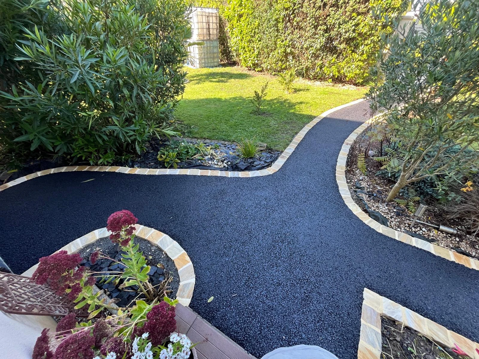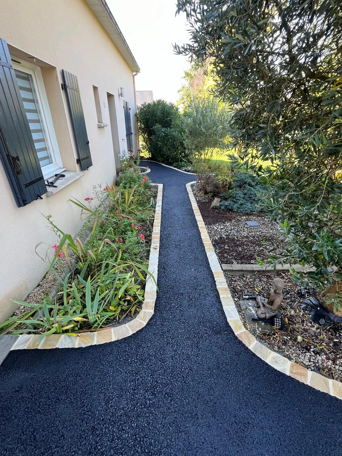 Les clients souhaitaient transformer leur espace extérieur en remplaçant le gravier par de l'enrobé pour un rendu plus moderne et pratique. Mais ce n'est pas tout ! Pour structurer les allées et ajouter une touche d'élégance, j'ai également posé des pavés qui apportent un véritable cachet à l'ensemble.
